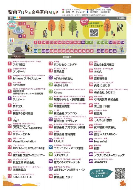 美味しいグルメ🍴、素敵なグッズ🎁、そして楽しい体験ブースなど、49店舗がお東さん広場に大集合します!食べて、飲んで、体験して、京都の魅力を体感してください!「ダブルダッチ体験会」や同時開催の七条商店街「ツリークライミング」もお見逃しなく🌳🤸♀️