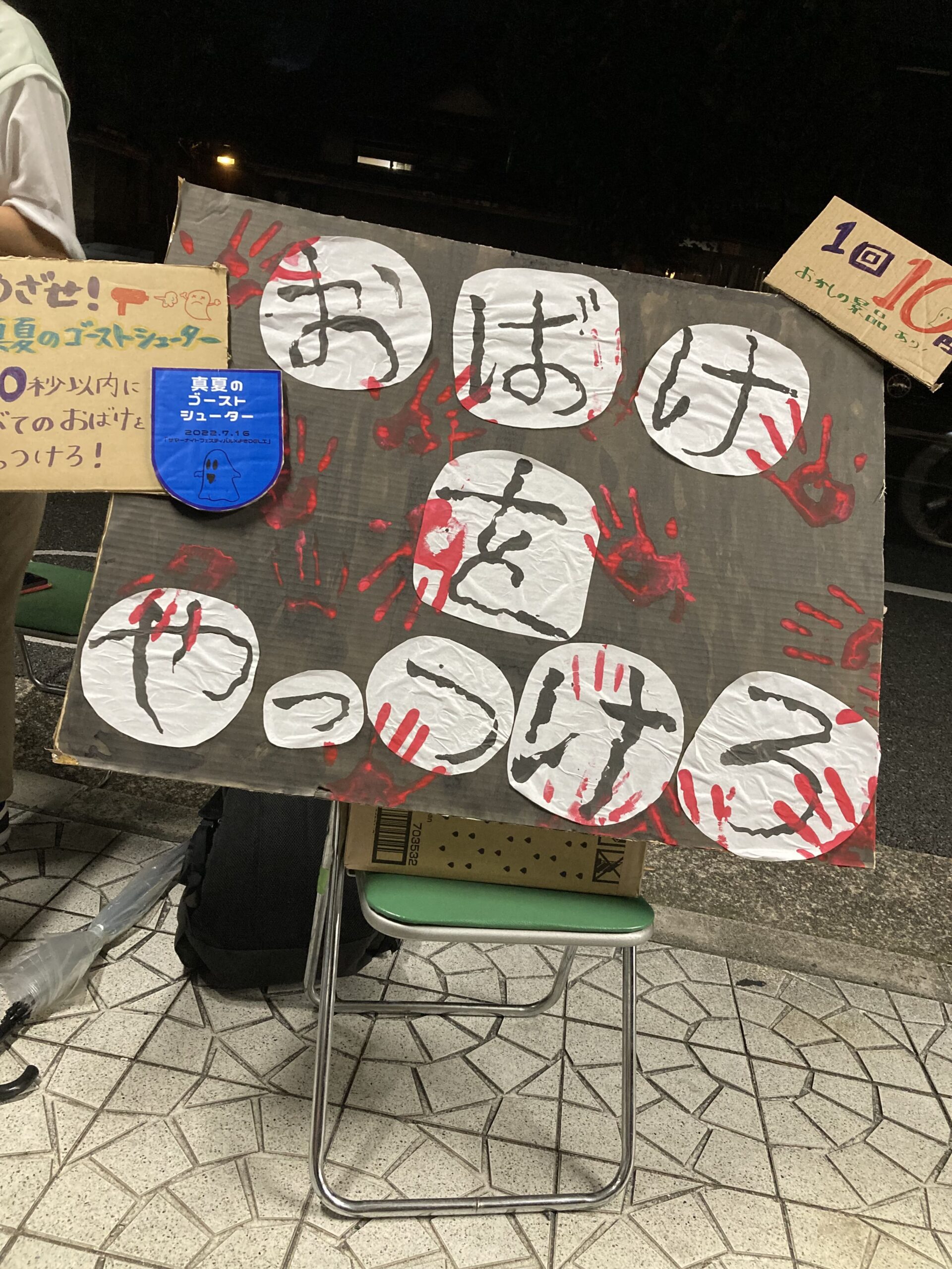 今回出店したゲームは制限内に空気砲で目の前のお化けを倒すという内容で全てのお化けを倒すと、お菓子の景品と「真夏のゴーストライダー」の称号をもらえます。