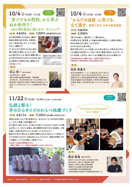 申込方法 | 本願寺未来財団ホームページ、公式LINEアカウント、チラシのQRコードからお申込ください。 |