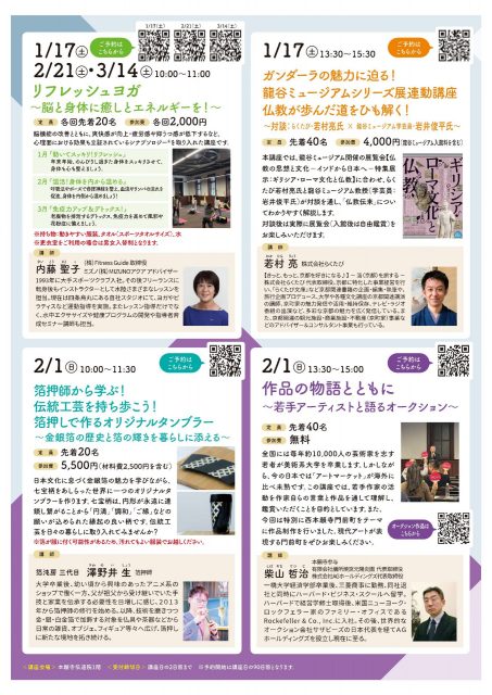 参加費 下記チラシの各講座欄をご確認ください。 ※講座によって異なります。